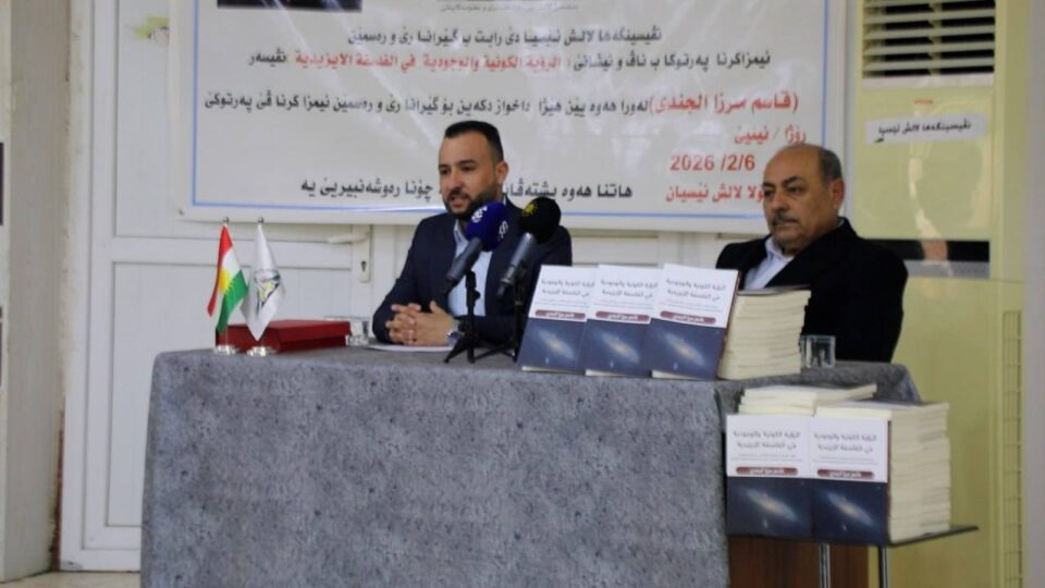 ژ بزاڤ و چالاکیین بەردەوام و هه‌مه‌جۆر یێن نڤیسینگەها لالش ئێسیا ل رێکەفتی 6/2/2026 ب ئامادەبوونا رێزدار (سەعید جردۆ) سەرۆکێ دەستەیا بلندا بنگەهێ لالش یێ رەوشەنبیری و کۆمەلایەتی و ژمارەیه‌کا مامۆستا و ڕه‌وشه‌نبير و كه‌سايه‌تى و ڕیهسپی و ماقول و موختارێن دەڤەرێ و ئەنجومەنێ مالا میرا و کارگێریا رێکخراوا ئێسیا و بەرپرسێ بنگەهێ لالش تایێ شێخان و بەرپرسێ بنگەهێ لالش باعەدرێ، نڤیسینگەها لالش ئێسیا ڕێوره‌سمێن ئیمزاکرنا پەرتوکا ڤەکۆلەر و نڤیسەر (قاسم مرزا الجندی) ل ژێر ناڤ و نیشانێ ديتنا گەردوون و هەبوونێ د فەلسەفا ئێزیدی دا (الرؤية الكونية والوجودية في الفلسفة الإيزيدية) گێرا.