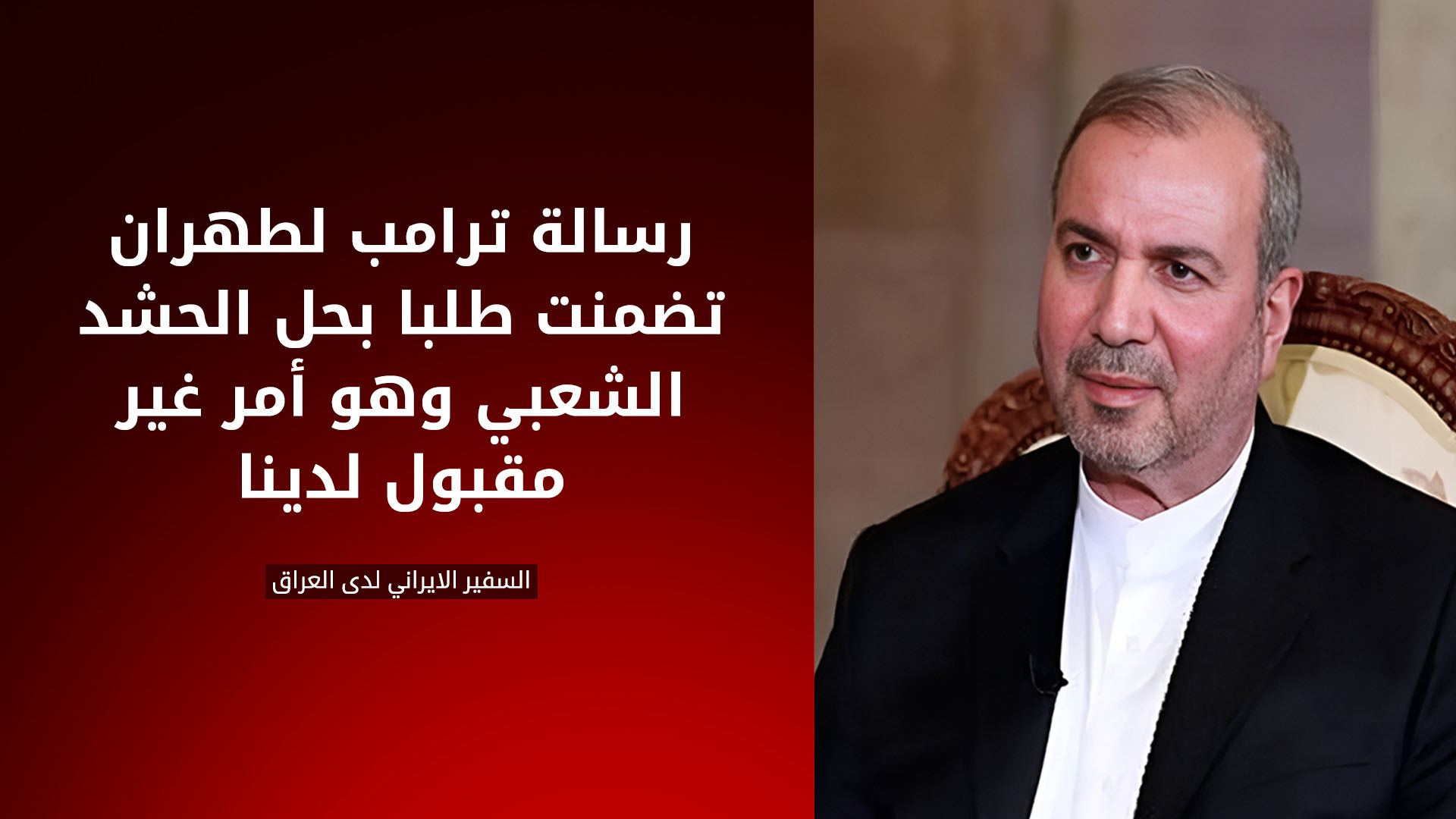 وقال محمد كاظم ال صادق السفير الايراني لدى العراق، ” إن “رسالة ترامب لطهران تضمنت طلبا بحل الحشد أو دمجه وهو أمر غير مقبول لدينا”.
