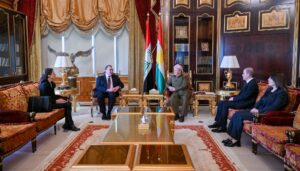 استقبل الزعیم الكوردی مسعود بارزاني، اليوم الأربعاء، 18 فبرایر/ شباط في منتجع صلاح الدین (بیرمام) القریب من أربیل ، القائم بأعمال السفارة الأمريكية لدى العراق جوشوا هاريس.