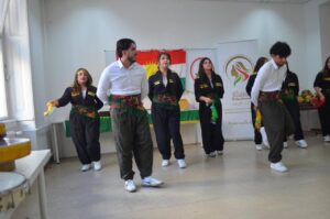 شهد الحفل جانباً وجدانياً من خلال كلمة الشاعرة وهيبة عيسى حول العلاقة بين الكلمة والهوية، إضافة إلى فقرة أدبية قدمها الكاتب جان باببير بعنوان “ذاكرة الحبر.. وروح الكلمة”. كما تجسد التراث الكوردي في عرض حي لفرقة (كوما آرفين) التي قدمت رقصات “الدبكة” الشعبية بإشراف جاسر بافي آريان وجان إبراهيم ومونا طاهر، فيما أضفى الفنان منتصر صالح لمسة جمالية على الأمسية بعزف موسيقي حي تفاعل معه الحضور.