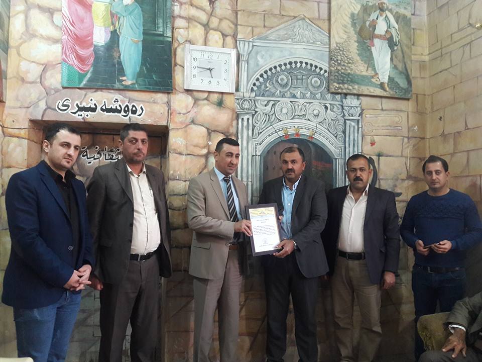 وەك رێزلێنان بۆ پێكۆلێن مەزن یێن خلمەتكاران بۆ خزمەتكرنا دەڤەرێ و ب تایبەت دووبارە ئاڤاكرنا مەزارگەهان،بنگەهێ لالش تایێ بەحزانێ ئەندازیار”خێری كدی”ب باوەرناما رێزلێنانێ و ئارمێ لالش خەلاتكر.