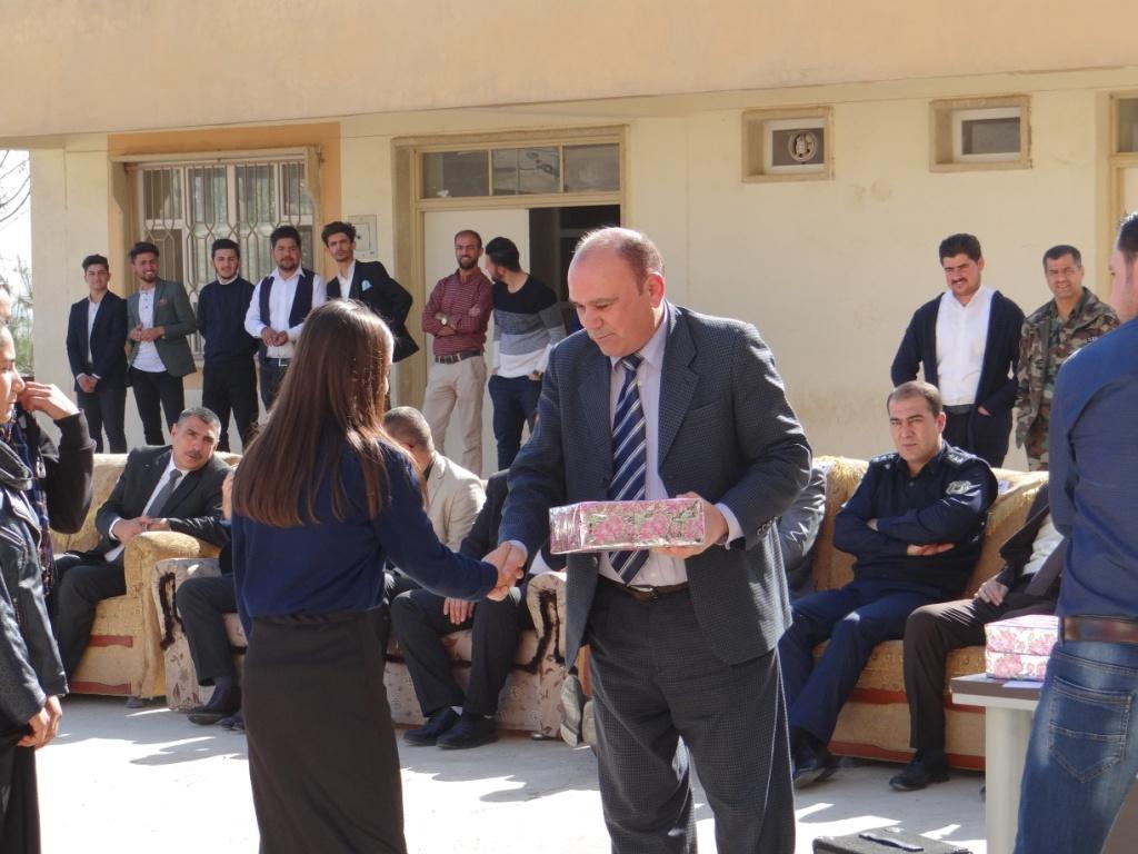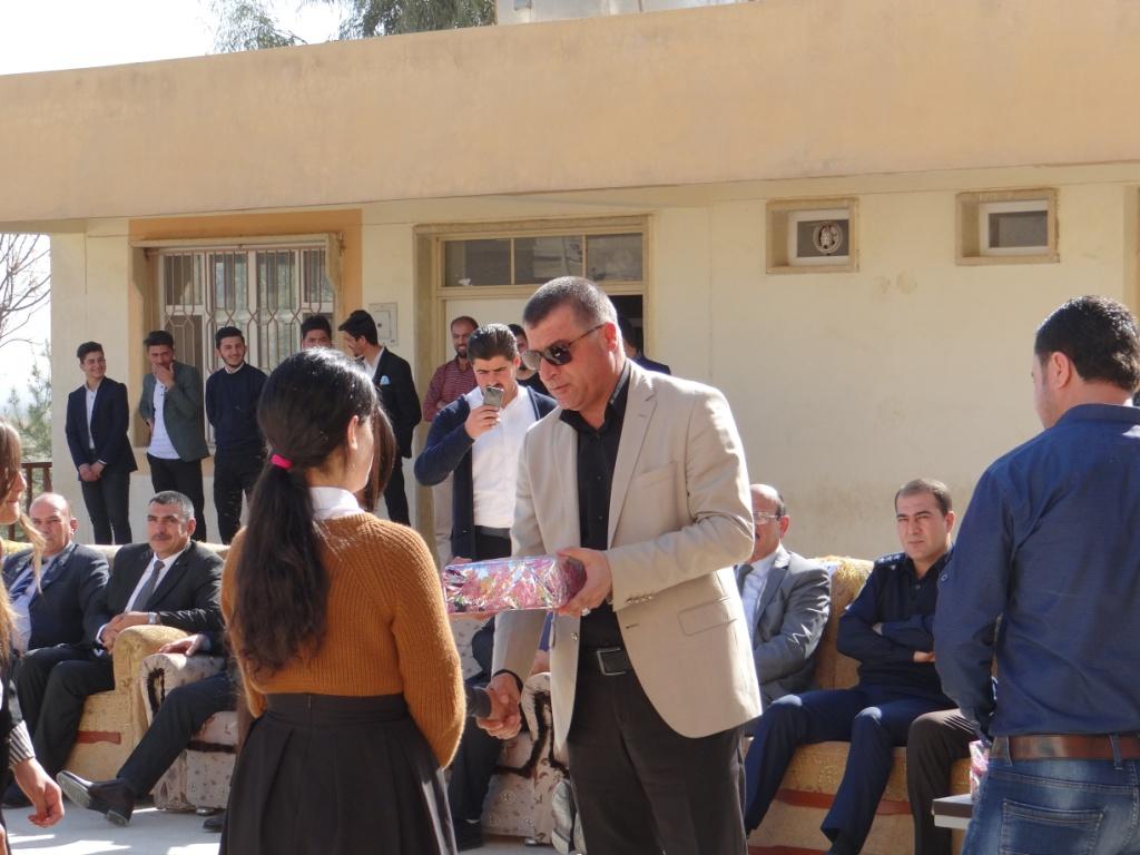 بحضور كل من السيد ازاد اسماعيل خرابي عضو الهيئة العاملة لفرع العشرين للحزب الديمقراطي الكردستاني و اسعد محي الدين مدير تربية قضاء الشيخان و شمال محمد اديب مدير ناحية باعدرى ومدراء وممثلو الدوائر الحكومية و الحزبية في باعدرى و مسؤول وأعضاء الهيئة الادارية لمركزنا و الكادر التدريسى والطلبة للإعدادية المذكورة .