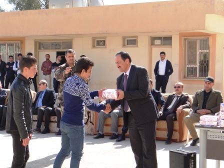 بعدها جرت مراسيم تكريم الطلبة المتفوقين البالغ عددهم ستة وثلاثون طالبا في جميع مراحل الاعدادية من قبل السادة الحضور بجوائز مقدمة من قبل المنظمين في اجواء سادها الفرح والسرور على وجوه الجميع .