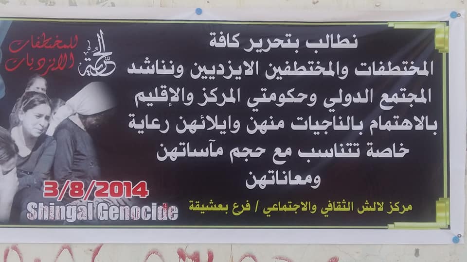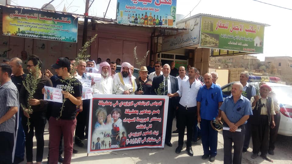 وبمناسبة الذكرى الرابعه لفاجعة سنجار الأليمة شارك جميع أعضاء هيئتنا الإداريه بالمسيرة والوقفه الاستنكاريه والتي شارك فيها ممثلين عن الأحزاب والمجالس الإجتماعيه في بعشيقة وبحزاني ومجموعة من رجال الدين وجمع غفير من أبناء مدينة الزيتون بكافة مكوناتها. .