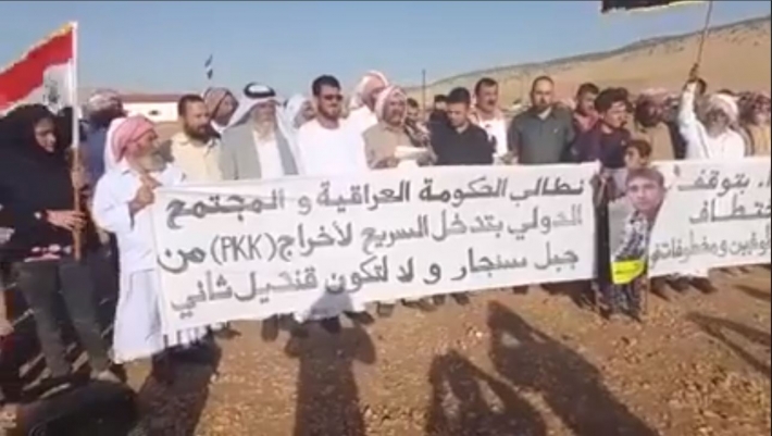 ودعا بيان صادر عن المتظاهرين الذين تجمعوا في جبل شنگال بأقصى شمال غرب العراق، الحكومة العراقية والمجتمع الدولي إلى التدخل العاجل لوقف الانتهاكات المستمرة لحزب العمال في القضاء، وإخراج العناصر المسلحة.