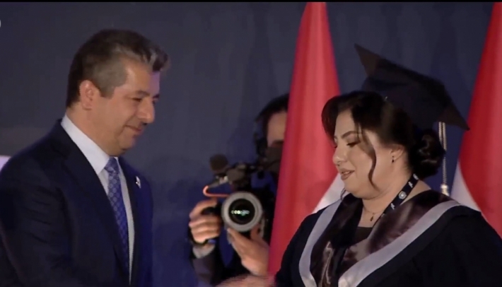 وقال مسرور بارزاني، “من دواعي الفخر أن نقدم وسام شرف الصمود للخريجة من قسم إدارة الاعمال، شيرين خيرو خديدا”.