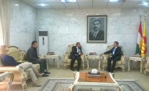 أستقبل هيمن هورامي عضو المجلس القيادي للحزب الديمقراطي الكوردستاني و مسؤول العلاقات الخارجية للحزب، الناشط في مجال حقوق الإنسان كاوة عيدو الختاري و فراس الدوغاتي والوفد المرافق لهما. وخلال اللقاء ناقش الطرفين الوضع الراهن في أقليم كوردستان والعلاقات الثنائية بين الجانبين. وفي اللقاء الذي حضره جنكي و ليزا فلك الدين الكاكةيى اعضاء مكتب العلاقات الخارجية للحزب، اعرب الوفد الزائر عن سعادتهم لهذه الزيارة.