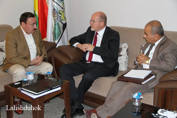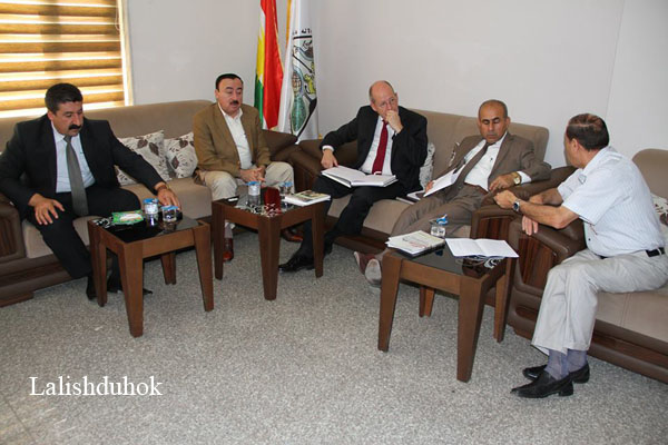 استقبل الشيخ شامو رئيس الهيئة العليا لمركز لالش الثقافي والاجتماعي وعدد من السادة من اعضاء الهيئة العليا اضافة الى شيخ خلات مراد مسؤول مركز لالش المانيا، السيد اكسل بلات ممثل ومدير مكتب اليونسكو في العراق والسيد خالد خؤشناو مسؤول التعليم في منظمة اليونسكو في كوردستان خلال زيارتهم اليوم الاحد المصادف 6/7/2015 الى مبنى مركز لالش الثقافي والاجتماعي بدهوك.
