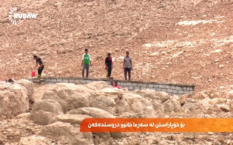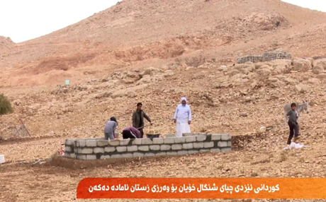 الكورد الايزيديون يشيدون منازل لهم على سفح جبل سنجار