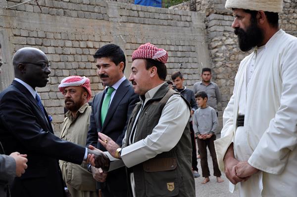 ثم رحب بابا شيخ بالسيد ديانغ وقال “نتمنى ان تهتم بتفعيل دور الامم المتحدة في حماية الاقليات ومشكلة الايزدية كبيرة جدا ، نتمنى ان تنظروا الى الايزدية نظرة خاصة ، وقد نقلنا مشكلتنا الى جهات كثيرة مثل امريكا ومحافل دولية اخرى ونحتاج الى المساعدة في كل المجالات” .