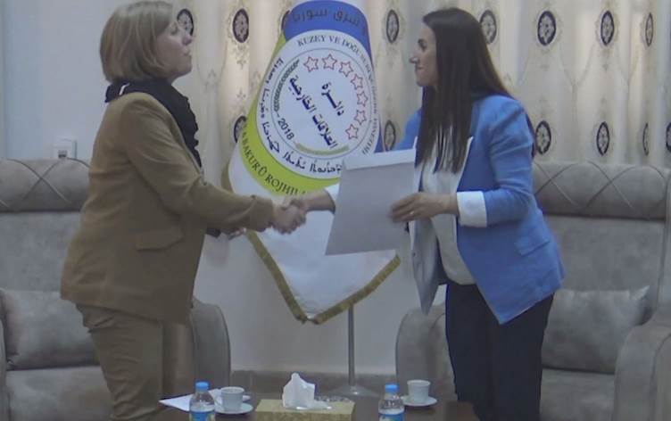 Şand ji aliyê Cîgira Hevserokatiya Desteya Peywendiyên Derve ya Rêveberiya Xweser Ebîr Êliya ve hat pêşwazîkirin û herdu alî bi hev re civiyan.