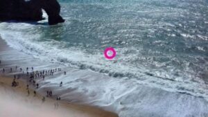 وقالت الشاهدة جيني بيل إن السباح “تمكن من أن يطفو فوق موجة قادمة وتمكن شخص ما من الإمساك به”.