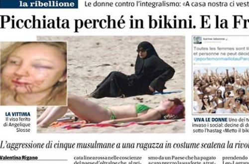 الصحف الفرنسية تبرز واقعة إعتداء مسلمات متشددات علي فتاه فرنسية لإرتدائها المايوه في حديقة عامة