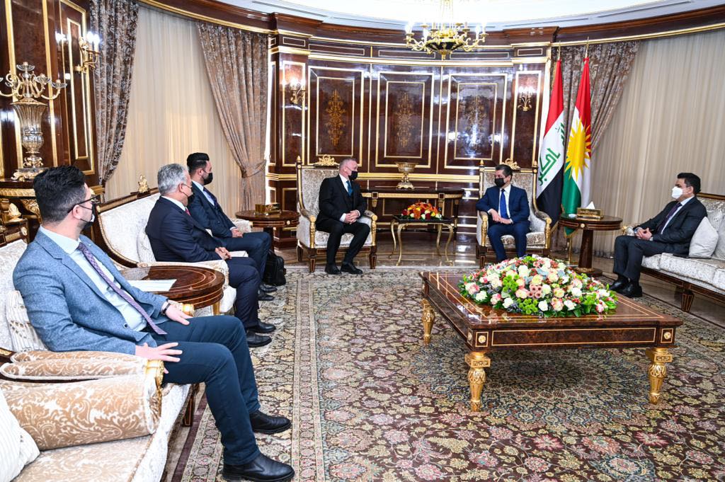 استقبل رئيس حكومة إقليم كوردستان مسرور بارزاني، اليوم الاثنين 11 نيسان (أبريل) 2022، وفداً مشتركاً من منظمة ماين (MAIN) النرويجية ومؤسسة بارزاني الخيرية.