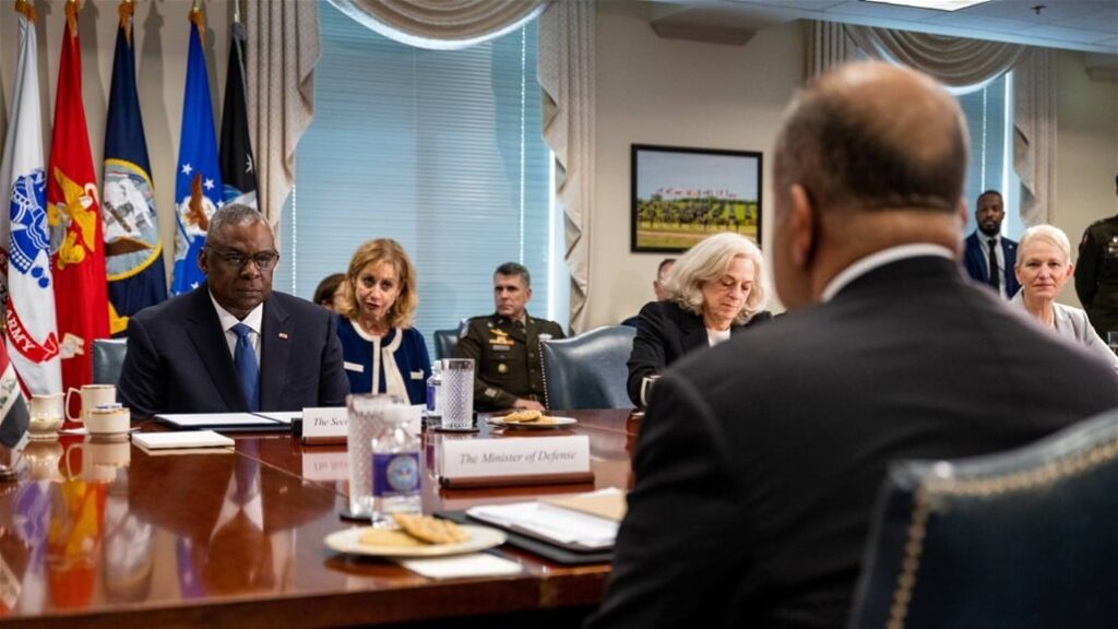 وأكد الوفدان الأمريكي والعراقي “التزامهما بتطوير قدرات العراق الأمنية والدفاعية وعزمهما على تعميق التعاون الأمني عبر مجموعة كاملة من القضايا لتعزيز المصلحة المشتركة لكلا البلدين في أمن العراق وسيادته، وفي استقرار المنطقة”.