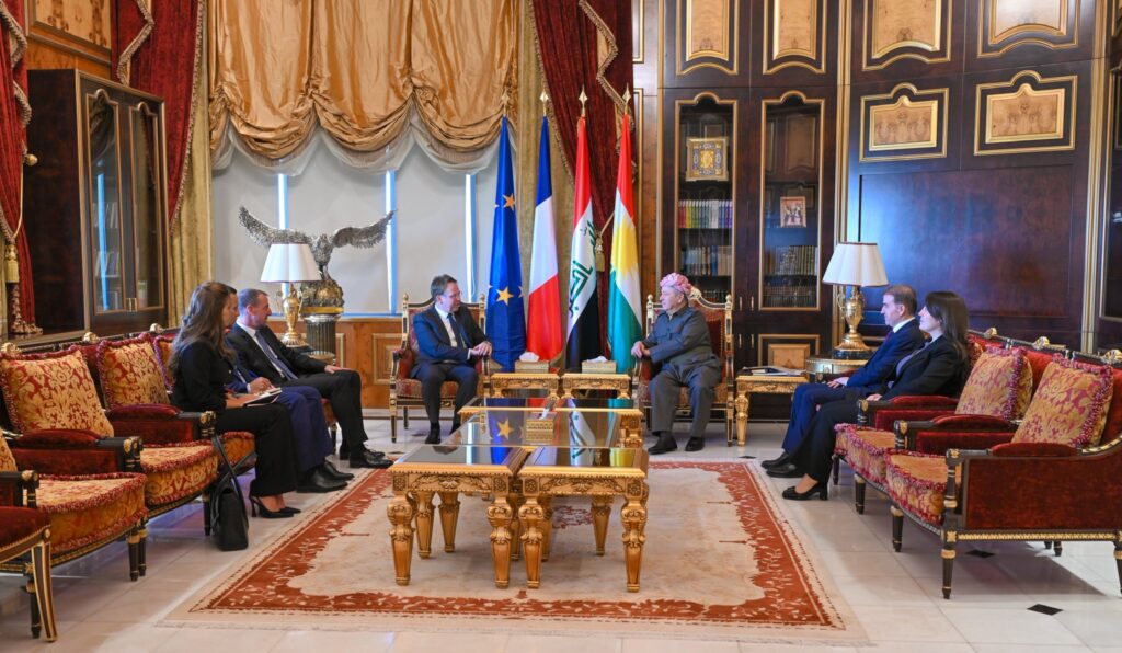 استقبل الزعيم الكوردي مسعود بارزاني، اليوم الثلاثاء، في منتجع صلاح الدين القريب من أربيل، السفير الفرنسي لدى العراق، باتريك دوريل.