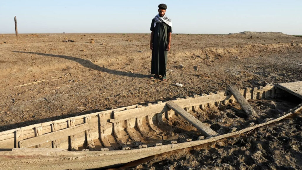 في مناطق جنوب العراق، المشهد مأساوي. الأنهار التي كانت يومًا مصدر الحياة، مثل نهر الفرات، انحسرت مياهها بشكل كبير، تاركة وراءها قيعانًا متشققة وقوارب صيد مهجورة.