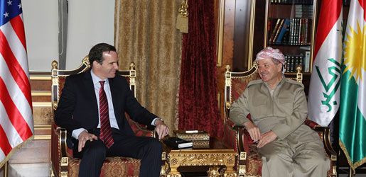 خندان – استقبل رئيس اقليم كردستان مسعود بارزاني اليوم الثلاثاء 2015/8/11 نائب مساعد وزير الخارجية الاميركي ونائب مبعوث الرئيس الاميركي باراك اوباما الخاص للتحالف الدولي ضد “داعش” بريت ماككورك يرافقه وفدا من الدبلوماسيين من وزارة الخارجية الاميركية وعدد من القادة العسكريين في الجيش الاميركي.