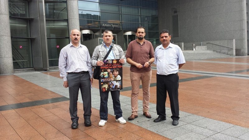 بعد انتهاء من مظاهرة بروكسل للجالية الايزيدية و استنكارنا للاعمال الوحشية و الارهابية لمرتزقة داعش على ابناء الديانة الايزيدية في شنكال .. توجهنا الى مبنى برلمان الاتحاد الاوربي و قدمنا مذكرة تتضمن اهم مطاليبنا الضرورية من الناحية الانسانية و مرفقة بالاف التواقيع من المواطنين الاجانب و التي جمعناها في اعتصامنا في مدينة بيليفيلد في المانيا ..