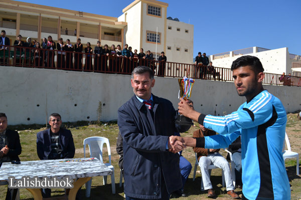 وفي نهاية هذه الدورة تم توزيع الجوائز على الفريقين الفائزين بالمرتبة الاولى والثانية وبحضور ممثلين عن لجنة محلية باعذرة و اتحاد طلبة الشيَخان و اتحاد الشباب في باعذرة وعدد من الطلبة والمدرسين.