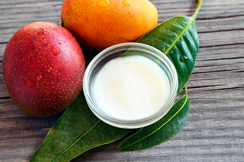 تحتوي زبدة المانجو على مضادات للأكسدة، مما يجعل من هذه الزبدة تطبيقاً موضعياً ممتازاً للتخلص من الأمراض الجلدية، كما أن هذه الزبدة تساعد على تخفيف التهاب الجلد الناجم عن الصدفية، والأكزيما، والتهاب الجلد، والوردية، ووجدت الدراسات أن زبدة المانجو لديها قدرة عالية على تجديد الرطوبة وتنعيم البشرة عند استخدامها في الكريمات، لذا لا تترددي في إضافة زبدة المانجو لترطيب بشرتك وتألقها.